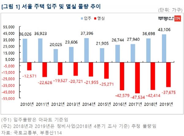 - 일단 새아파트 공급 물량 대비 멸실 물량의 증가 속도가 가팔랐고